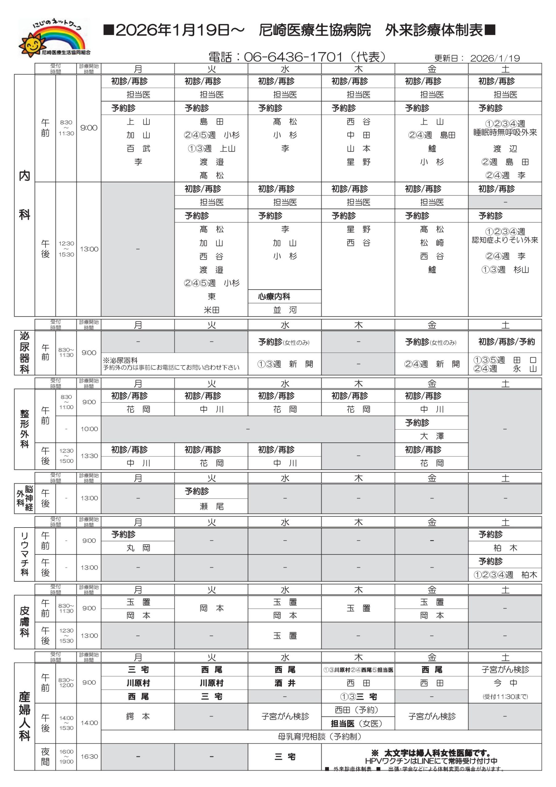 ホーム 新着情報 一覧 診療体制表更新のお知らせ