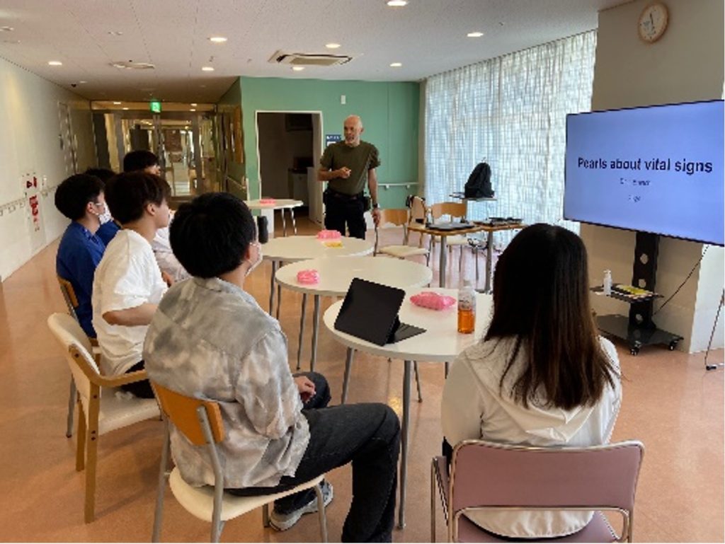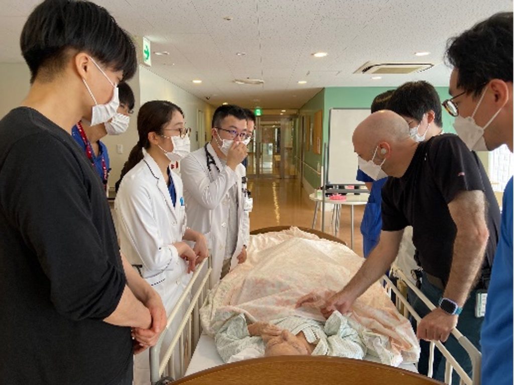 年2回(7月、11月)、湘南鎌倉総合病院の教育専任医師であるジョエル・ブランチ医師を講師に迎え、ケースカンファレンスとベッドサイドティーチングを行っています。すべて英語で行うため、研修医の英語力向上に役立っています。